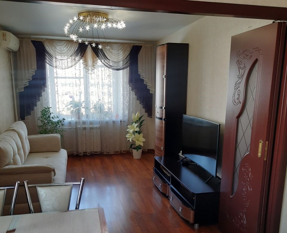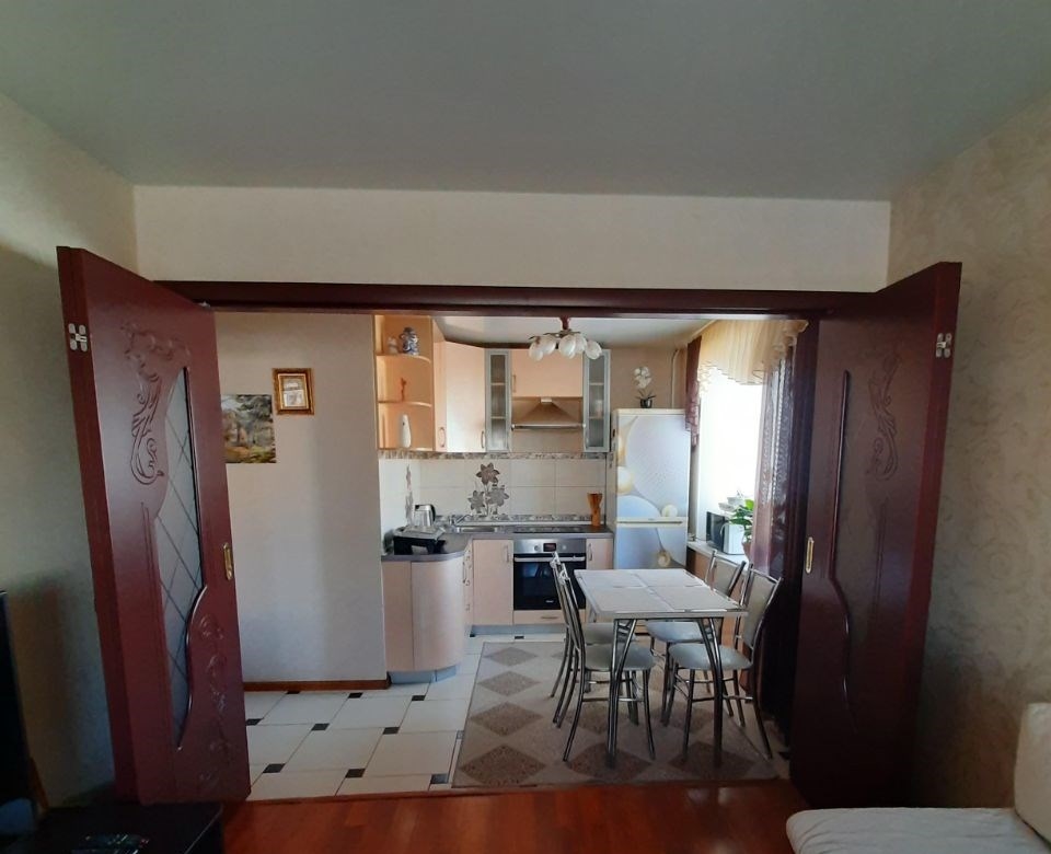 уютная , тёплая квартира . дом расположен рядом с парком культуры и отдыха им. гагарина. в квартире поменяли проводку , коммуникации. на кухне тёплый пол, в каждой комнате кондиционер. мебель остаётся , техника по договорённости. оригинальное решение пространства , двери книжка, сохраняют комнату и в тоже время превращают комнату в студию .
