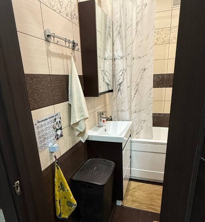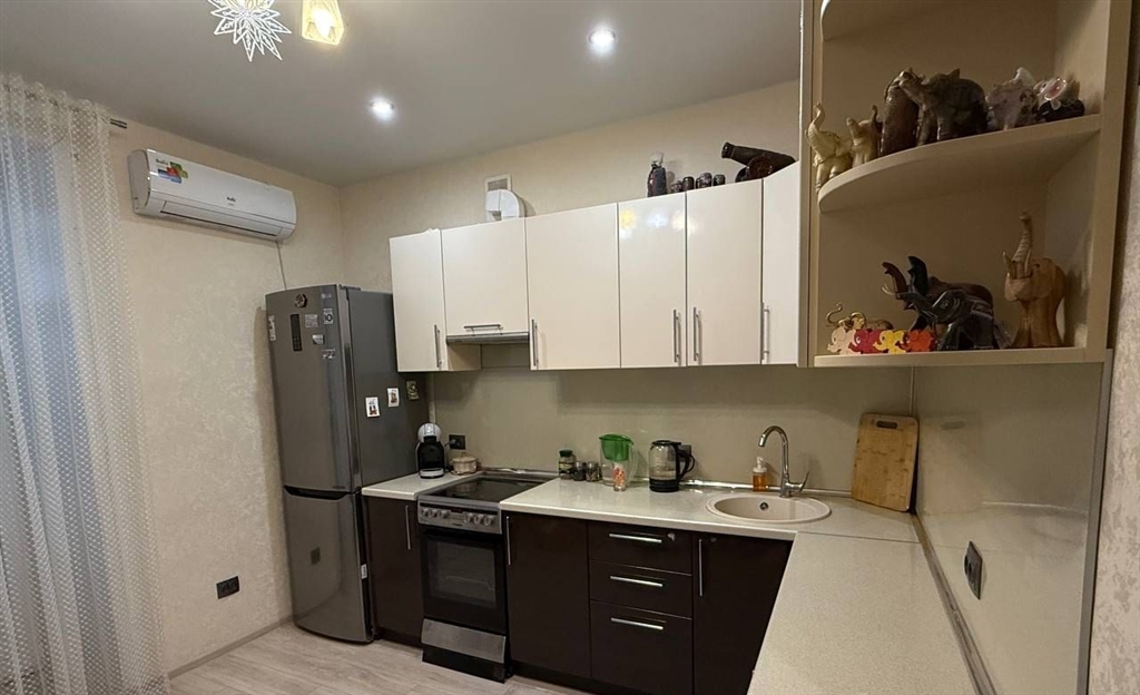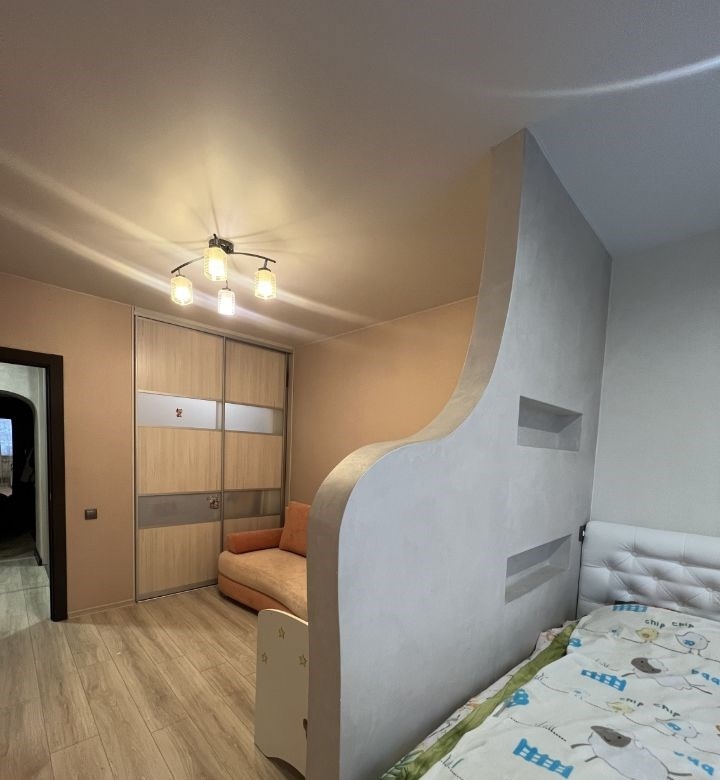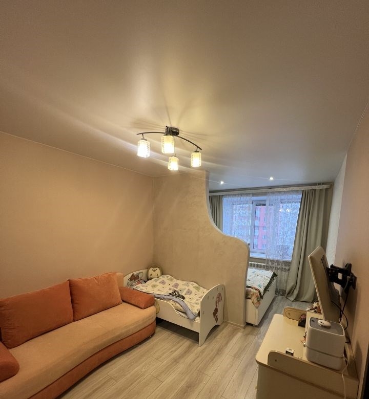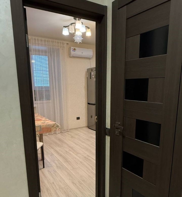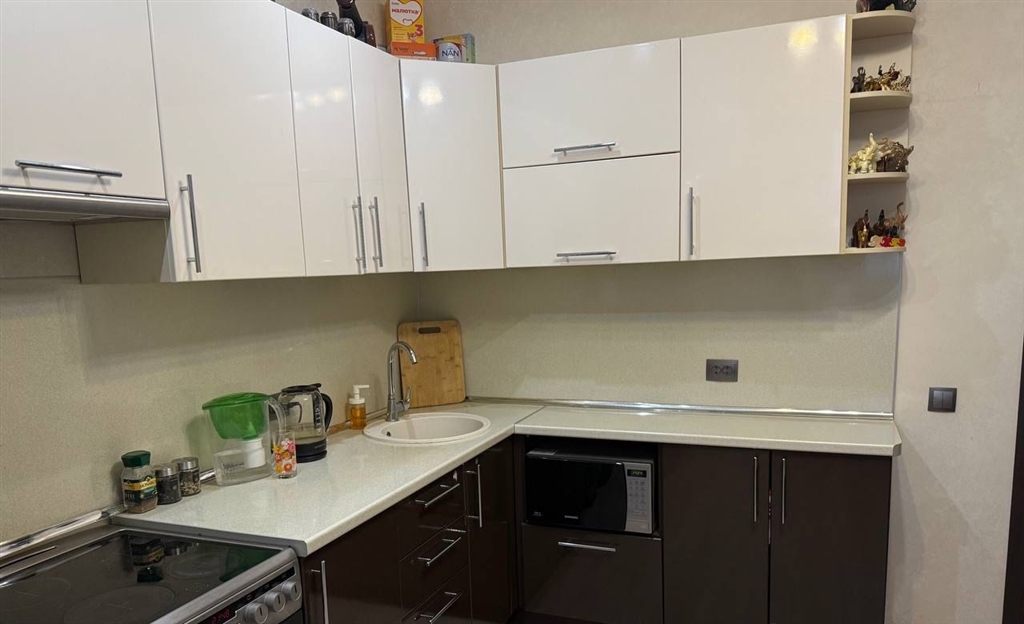 в продаже 1 комнатная квартира с продуманной , очень удобной планировкой комната разделена на две зоны , квартира очень теплая и уютная . ремонт выполнен из дорогостоящих материалов объемный гардероб в комнате в формате шкаф купе шкаф купе в коридоре выполнен из дорогостоящих материалов с броне пленкой что исключает царапины , а в случае удара не осыпется и не разлетится . напольное покрытие ламинат высокого класса влагостойкий . сантехника ledeme lux коридор окрашен качественной , моющиеся краской , перегородка так же выполнена той же фактурой . освещение и проводка распределена поточечно , автоматы отдельно на свет и отдельно на розетки в каждой комнате . на каждом смесители дополнительно стоят краны что позволяет отключать сантехнику точечно при замена смесителей и шлангов . на балконе сделан ремонт стены короед , пол линолеум , стеллаж из шлифованного бруска , освещение точечное . очень удобная транспортная развязка , три пятерочки , спа , фитнес центр , автомойка , остановка , школы , сады , поликлиника . цена без торга .