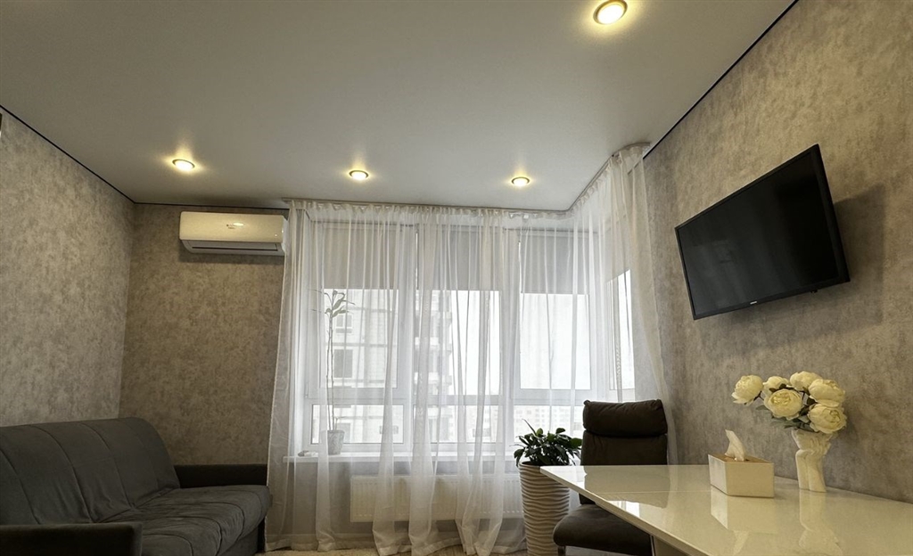 на длительный срок сдается уютная квартира в жк мята в доме комфорт класса. квартира полностью мебелирована и оснащена необходимой техникой для жизни холодильник, варочная панель, микроволновка, чайник, встроенная посудомойка, кондиционер, 2 телевизора, стиральная машина, водонагреватель. на балконе теплый пол, что позволяет использовать его в качестве дополнительного пространства , например, кабинет. дом находится в жк закрытого типа с большой парковочной зоной, в шаговой доступности вся инфраструктура.