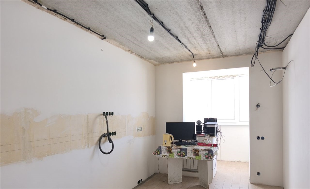 продается квартира с частичным ремонтом. продумано всё до мелочей сан узел сделан полностью установлен коллектор отопления, воды, датчики протечки воды. в коридоре, ванной и кухне на полу положена керамогранитная плитка и установлены теплые полы. в комнате и в гардеробе предполагался ламинат. сделана финишная штукатурка стен. была выполнена стяжка пола. электрика сделана вся, каждая розетка, выключатель выведены напрямую к щитку, без скруток. отопление лучевое. лоджия 6 м, утеплена, с выводом электрики, на лоджию можно выйти как с комнаты, так и из кухни. окна выходят на гипермаркет лента. проложена трасса под кондиционер. новая металлическая дверь. показ в любое удобное время звоните чистая продажа. прекрасный вариант для людей которые сами хотят выбрать цвет обоев, и самим сделать выбор дверей. фото планировки прилагаю. есть фотографии этапов ремонта.