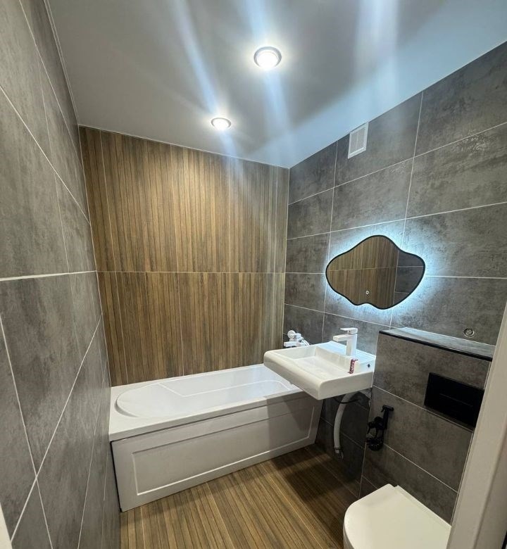 в квартире сделан, капитальный ремонт, заменены все коммуникации, трубы, эл. проводка, отопление. стены выведены по маякам. покрыты структурной штукатуркой и покрашены фасадной, моющейся краской. на полах сделана механизированная полусухая стяжка.сверху постелен, качественный ламинат.ванной, унитазом и мебелью, никто не пользовался. в квартире все новое тоесть в квартире ничего не нужно будет делать,много лет. покупайте, заселяйтесь и получайте удовольствие от вашей новой квартиры.