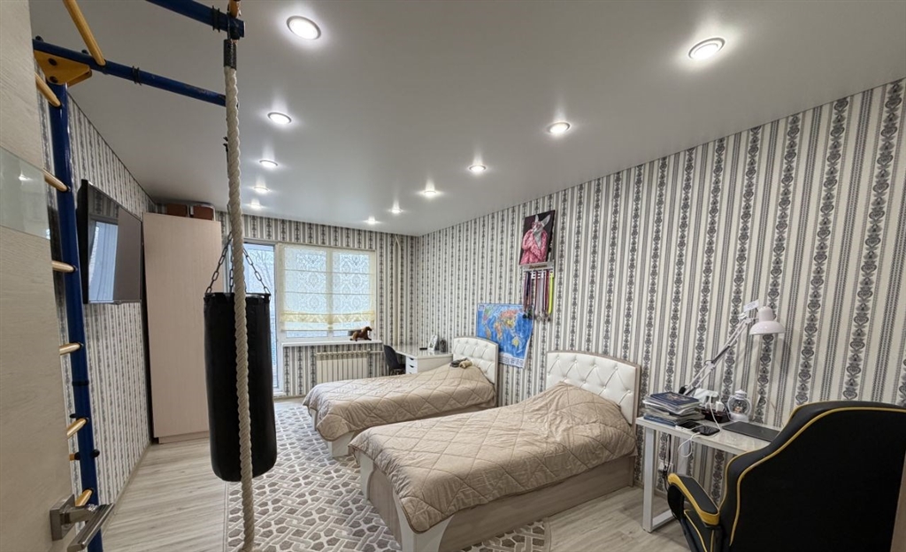 предлагаю к покупке отличную, большую, просторную квартиру, сделан качественный евроремонт, плитка, ламинат, натяжные потолки, теплый пол, кондиционер, в квартире остается вся мебель и вся техника , заезжай и живи, ремонт делали для себя , все материалы качественные и дорогие, комнаты и кухня изолированы, есть двери.рядом в шаговой доступности одной остановки две школы и шесть садиков, магазины, аптеки, отличная транспортная развязка, скоростной трамвай, отличные соседи , все собственники, нет квартирантов, большой грузопассажирских лифт, подъезд в плитке, производится часто уборка, во дворе чистят снег и убираются ук каждый день, соседи все дружные, много парковочных мест, рядом платная стоянка , вокруг дома детская площадка очень большая, спортивная площадка, футбольное и волейбольное поле своя крышная котельная оплата за отопление в месяц в районе 2000очень теплая квартира батареи перекрыты все время очень жарко отличный вариант для семей с детьми, детская комната уже оборудована , заезжай и живи