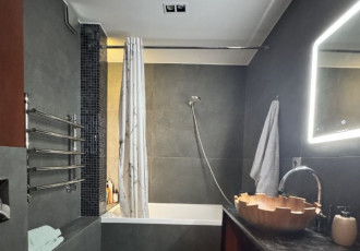 продается уютная квартира с дизайнерским ремонтом на 10 этаже кирпичного дома. просторная кухня оборудована современной техникой, включая холодильник и встроенные шкафы. в гостиной установлен кондиционер и стильный диван, создающий атмосферу...