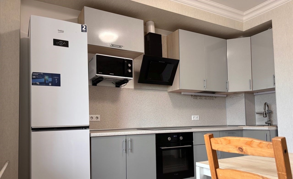уютная однокомнатная квартира , с мебелью и техникой. 50 м2 . большая кухня со всей техникой. просторная спальня с кондиционером, с удобным гардеробом, зеркалом. удобная прихожая с шкафом. санузел ванная, туалет , раковина , полка над раковиной , стиральная машина. вся техника свежая. новый матрас. балкон 6 метров в длину, не застекленный. из окна вид во двор , но изза 14 го этажа открывается прекрасный вид .