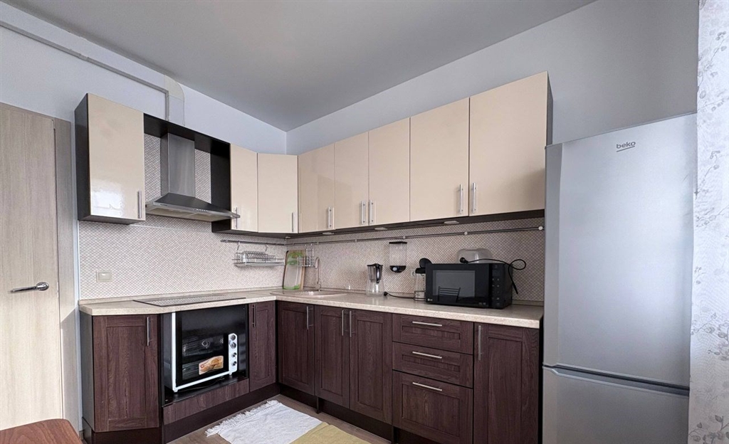 сдается однокомнатная квартира.все необходимое для проживания имеется мебель, варочная панель, стиральная машина, свчпечь, кондиционер.35000куоплата первого месяца собственник.