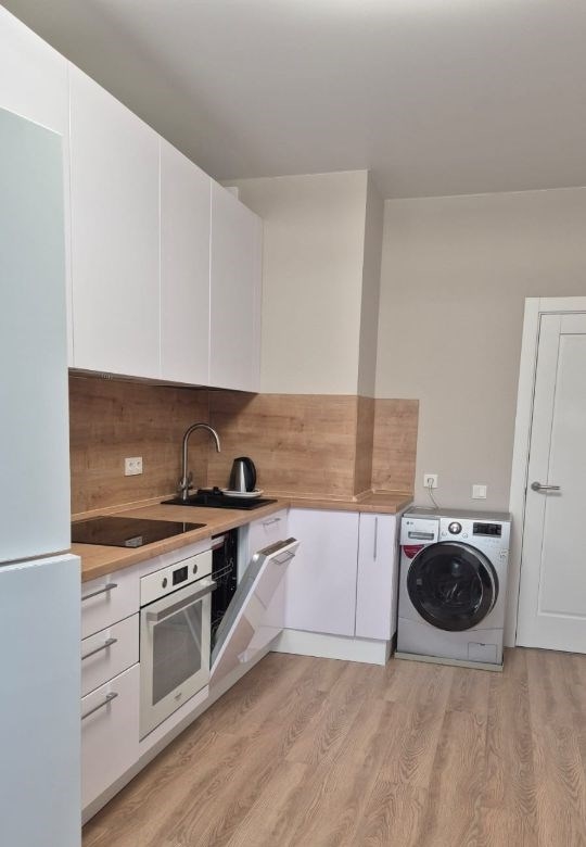 сдам на длительный срок с 25.03. очень уютную однокомнатную квартиру без комиссии. в ней есть всё необходимое для комфортного проживания одного человека или пары без животных. квартира расположена в удобном районе с развитой инфраструктурой и хорошей транспортной доступностью. внутри выполнен свежий ремонт,новая кухня с техникойдуховой шкаф, посудомоечная машина, варочная панель индукция, холодильник, стиральная машина, вытяжка так же в квартире имеется большая гардеробная. при необходимости будет диван. оплата за первый и последний месяц можно частямив помошниках по сдаче не нуждаюсь.