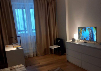 уютная однокомнатная квартира в тихом, зеленом районе. 3 минуты пешком до станции метро приморская. квартира находится на 5 этаже, окна выходят во двор, выход на балкон через комнату.