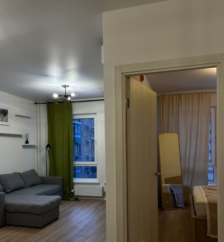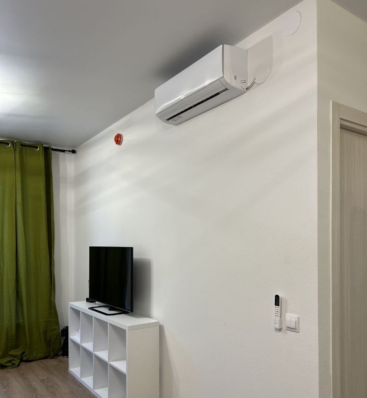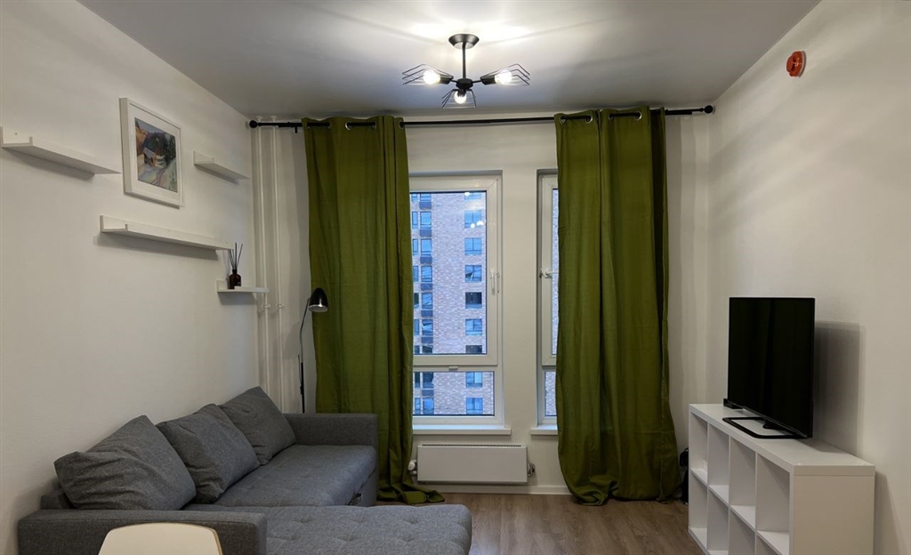 продается квартира 35,6 кв.м. в новом жк. от собственника. оборудованная кухня духовка, плита, вытяжка, посудомойка, холодильник, микроволновка. кондиционеры в спальне и в гостиной. также стиральная машина, телевизор, зоны для хранения и тд.