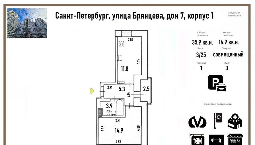 трехсторонняя квартира в современном доме недалеко от метро и рядом с паркомв прямой продаже просторная однокомнатная квартира с хорошим ремонтом, расположенная в одном из самых благоприятных для жизни районов петербургау нас подготовлены все документы, быстрая и простая сделка успейте купитьвы оцените наши преимуществаюридически чистые документыотличное состояние вложения не требуютсяочень редкая и функциональная планировказакрытая автомобильная парковка внутри периметра двора за шлагбаумомблизость метро, доступность парков и удобная для комфортной жизни локация.кому идеально подойдет квартирадля тех, кто хочет жить в развитом районе города с хорошей экологией, оставаясь в доступности от метродля тех, кто хочет вложить средства в высоколиквидную недвижимость.наша квартирасветлая, солнечная, чистая и аккуратная в 2023 году произведен косметический ремонтудобная планировка и расположение помещений позволят вам грамотно и рационально организовать пространствотрехсторонняя ориентация идеально для жизни все окна выходят во дворимеется застекленная лоджияустановлен видеодомофон проведен интернет и кабельное телевидениекухонный гарнитур останется покупателю.наш дом и дворсовременный кирпичномонолитный дом 2008 г.п.дизайнерская отделка входных групптри грузопассажирских лифтаприличные и доброжелательные соседидиспетчерская служба, служба консьержей и видеонаблюдениена закрытой придомовой территории оборудована детская игровая зона и спортивная площадка регулярно проводятся праздничные развлекательные мероприятиядом обслуживается ук cosmoservice одна из ведущих профессиональных управляющих компаний.инфраструктура и окружениежилой дом расположен в благоприятном для жизни районе с оптимальным сочетанием городской среды и природных зон сегодня это полностью сложившийся развитый район с торговой, развлекательной, социальной и коммерческой инфраструктуройдо станции метро гражданский пр. всего 10 минут ходьбы пешком остановки транспорта возле домав пешей доступности магазины, пекарни, кафе, рестораны, торговые центры, организации сферы услуг, фитнесклубы с бассейном, поликлиника 90 и мфц в 10ти минутах от дома выезд на кад и за городв 5ти минутах ходьбы гипермаркет окей и тц прометей с кинотеатромв 5ти минутах езды трц родео драйв с аквапарком, местами для развлечений и шопингавблизи от дома находится живописный муринский парк с ландшафтным оформлением, красивыми водоемами и велосипедными лыжными трассами в 10ти минутах от дома сад прометей, в получасе ходьбы крупнейший природный лесопарк сосновка для прогулок и отдыха.документы и условия сделкиполная стоимость в договореодин взрослый собственник без обременений и долгов, личное присутствие на сделке, материнский капитал не использовалсяв квартире нет зарегистрированных лиц перепланировок нет.вам обязательно у нас понравится приглашаем на просмотр