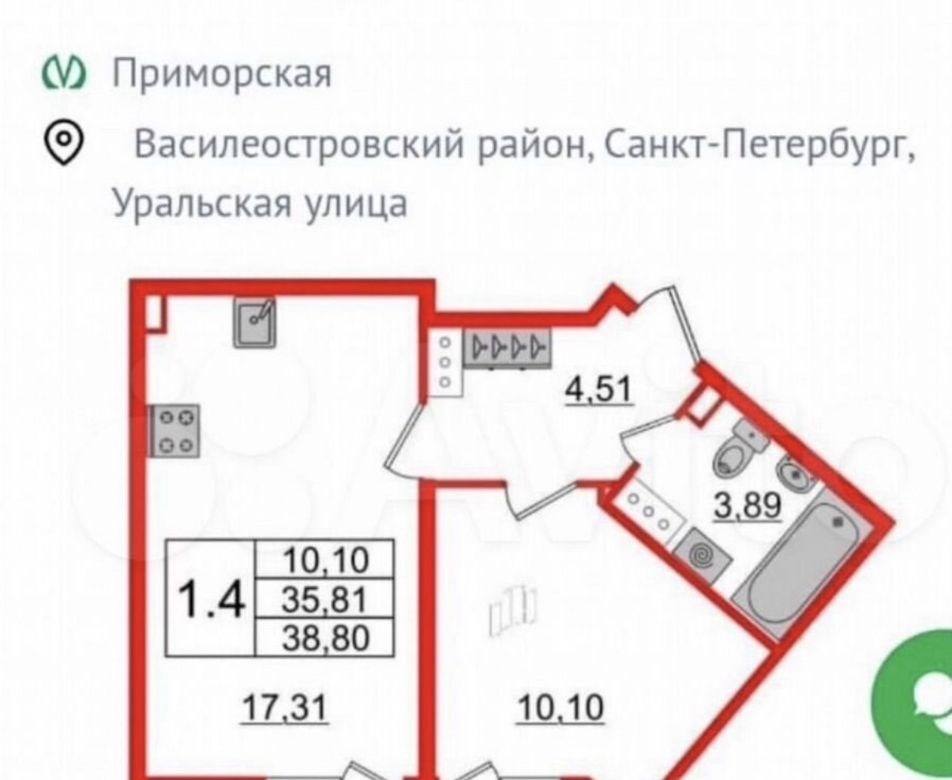 Купить 1-комнатную квартиру Остров Декабристов, Уральская 23, Василеостровский, 16 250 000 руб.