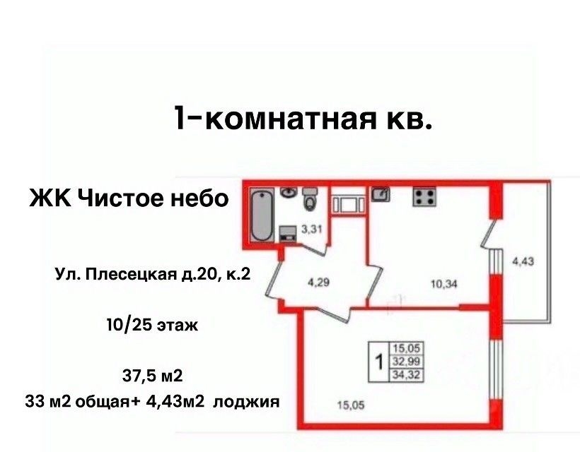 продается уютная однокомнатная квартира с отделкой, мебелью и техникой, площадь квартиры 33 м2 4,43 м2 застекленная лоджия, квартира расположена на комфортном 10 этаже 25этажного монолитного дома 2019 года в жк чистое небо от известного и качественного застройщика setl group дом находится в новой современной части приморского района, который считается одним из самых экологичных в городе санктпетербург. в шаговой доступности магазины, школы, детские сады, парки и остановки общественного транспорта. квартира заезжай и живи не требует дополнительных вложений отличный вариант , чтобы сразу переехать в новую квартиру или сдавать в аренду в квартире никто не проживает.преимущества квартирыквартира правильной прямоугольной формы 33 м2 с большой лоджией 4,43 м2просторная кухня 10,34 м2 квадратной формы, удобно располагать мебельпросторная комната прямоугольной формы 15 м2просторный санузел 3,31, и прихожая 4,29 м2сделан хороший ремонтустановлены пластиковые окна,новая сантехника.в комнате двуспальная кровать, вместительный шкаф, комод и гостиный гарнитур для комфортного расположения ваших вещей.кухня оборудована всем необходимым кухонный гарнитур, плита, духовой шкаф, холодильник, обеденный стол.санузел совмещенный, отделан плиткойпросторная лоджия с панорамным остеклением.удобное расположение.развитая инфраструктура, все необходимое а пешей доступности, рядом и прямо в доме.10 минут до станции метро комендантский проспект на общественный транспорте.недалеко выезд на зсд, до центра города 25 минутво дворе имеется наземная парковка с большим количеством свободных мест.по документамодин взрослый собственник, без обременений, без мат.капитала, без ипотеки, в собственности более 5 лет, сопровождение безопасной сделки агентством недвижимости.не упустите возможность приобрести эту замечательную светлую, уютную квартиру по хорошей рыночной ценепрямо сейчас звоните и записывайтесь на просмотрномер объекта 153721624690