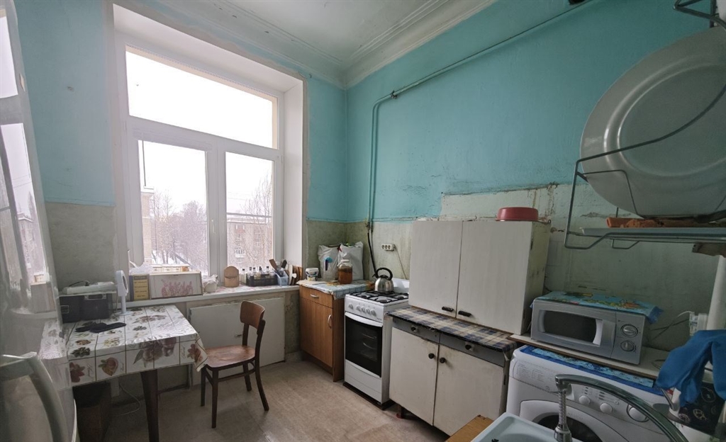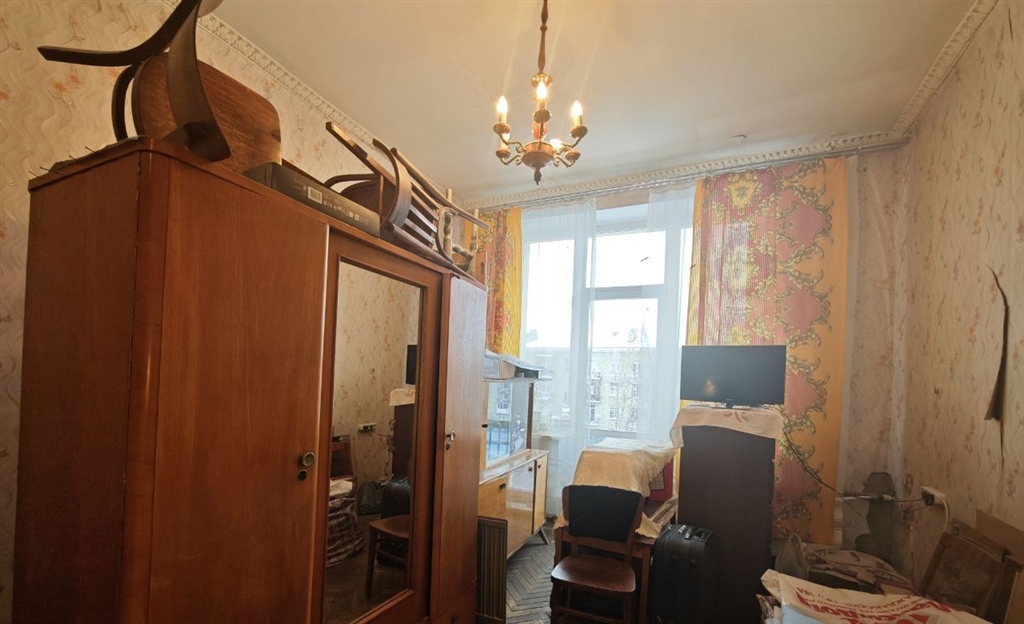 продается двухкомнатная квартира общ. площадью 59 кв.м. на 4 этаже в добротном сталинском доме 1953 года постройки. квартира состоит из двух изолированных комнат 19.4 и 14,8 кв.м. с выходом на балкон, кухня 8,7 кв.м., раздельный санузел и прихожая 9,1 кв.м. квартира очень светлая. окна всей квартиры выходят в тихий двор. высокие потолки 3,2 метра создают ощущение простора. над квартирой есть технический этаж. год назад произведена замена кровли. квартира требует ремонта, что позволит вам спланировать пространство под себя. один собственник с 2013 года.