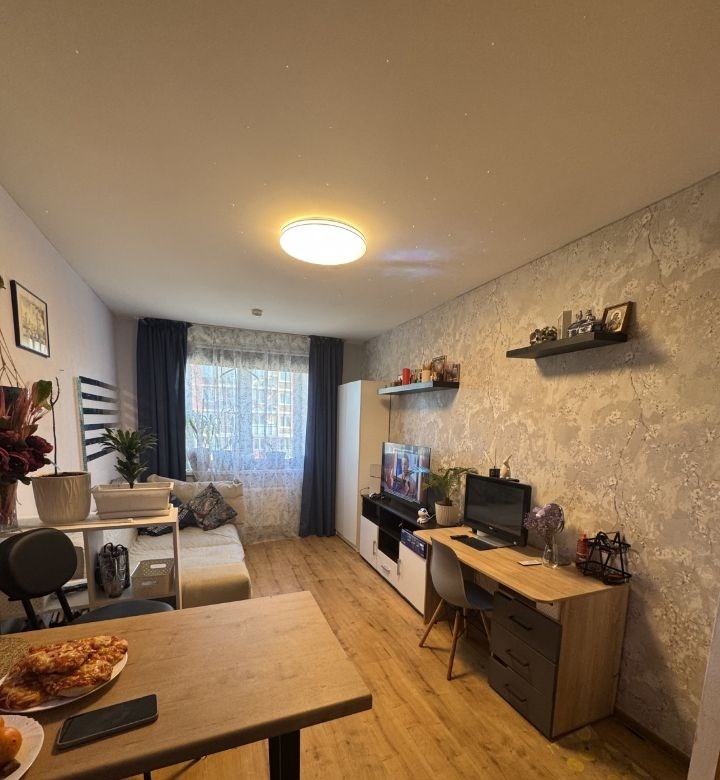 продается просторная однокомнатная квартира в новом районе спб .в квартире кухня гостиная 17.3 кв м ,комната 11.05 с выходом на лоджию,совмещенный сан узел и просторная входная зона .новым владельцам остается в подарок кухня ,варочная поверхность ,духовка,холодильник ,диван ,тумба ,кровать ,шкаф ,стиральная машина ,вообщем все для того ,чтобы въехать и ни о чем не думать .один взрослый собственник без долгов показы по договоренности.