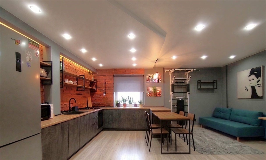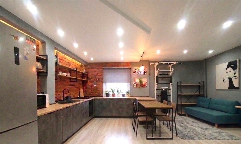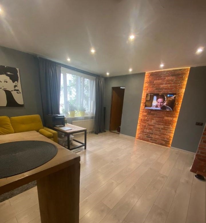 квартира расположена на 4 этаже, светлая и уютная три окна обеспечивают хорошее естественное освещение в течение всего дня. формат заезжай и живи квартира полностью готова к комфортному проживанию.планировка 41,8 м² спальня 12 м² кухнягостиная 22,5 м² ванная комната 3,5 м² коридор 4 м²квартира перепланирована из двухкомнатной в современную евродвушку с удобным зонированием и свежим ремонтом.спальня оформлена в ярком и стильном решении, с акцентной отделкой стен. установлен вместительный шкаф и диван, пространство легко адаптируется под кровать или рабочую зону.кухнягостиная выполнена в современном стиле лофт сочетание кирпичной стены, теплой подсветки и лаконичной мебели создает атмосферу уюта. угловой кухонный гарнитур расположен вдоль окна, что делает зону максимально функциональной и светлой. установлены большой холодильник, газовая варочная поверхность, духовой шкаф, микроволновая печь. есть обеденная зона и дополнительное рабочее пространство.гостиная зона с удобным диваном и местом для отдыха. пространство продумано так, чтобы комфортно принимать гостей и проводить время дома.ванная комната выполнена в современном стиле с использованием темной плитки и древесных текстур, оборудована ванной, душевой системой и удобной зоной хранения.коридор оборудован системой хранения, шкафами и зеркалом в полный рост. есть отдельная зона для верхней одежды.дом расположен в зеленом и спокойном районе с развитой инфраструктурой. в пешей доступности школы, детские сады, поликлиники, магазины, кафе и спортивные объекты. рядом благоустроенные дворы и площадки.