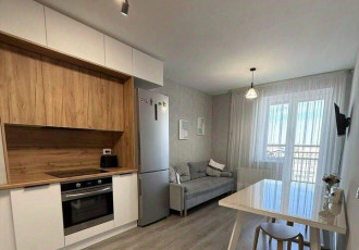 объект 73. продается светлая уютная 2к квартира. общая 57.4 кв.м., жилая площадь 28.6 кв.м., площадь кухни 15.7 кв.м. 11 этаж 20этажного дома, монолитный, дом постройки 2021 года. дизайнерский ремонт, раздельный санузел, есть лоджия, центральное...