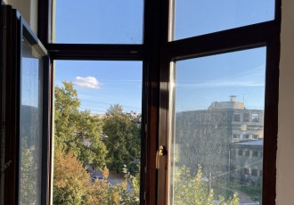 просторная квартира около метро чкаловская. большая кухня 12,6м2 и большая комната 26 м2. панорамные окна на улицу большая зеленина