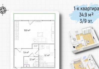продается уютная однокомнатная квартира в современном жилом комплексе, построенном в 2024 году. общая площадь квартиры составляет 34.95 кв. м, из которых жилая 14.29 кв. м, а кухня 10.5 кв. м. квартира расположена на 2 этаже 9этажного...