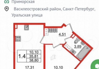 арт. 134809867 продаётся просторная и светлая 1комнатная квартира в приморском районео квартире и доме этаж 5 из 16. общая площадь 38,4 м² с лоджией 6,8 м². редкий формат для однокомнатной квартиры, позволяющий грамотно организовать пространство....
