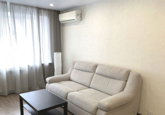 хорошая, теплая квартира, сделан ремонт, остается кухня, шкаф купе, все встроено, два кондиционера, балкон отделан, первый этаж, но квартира высоко на фундаменте, полы сделана стяжка.