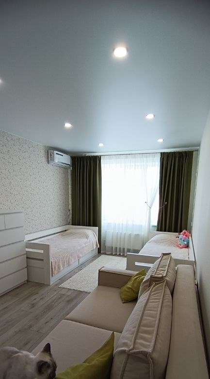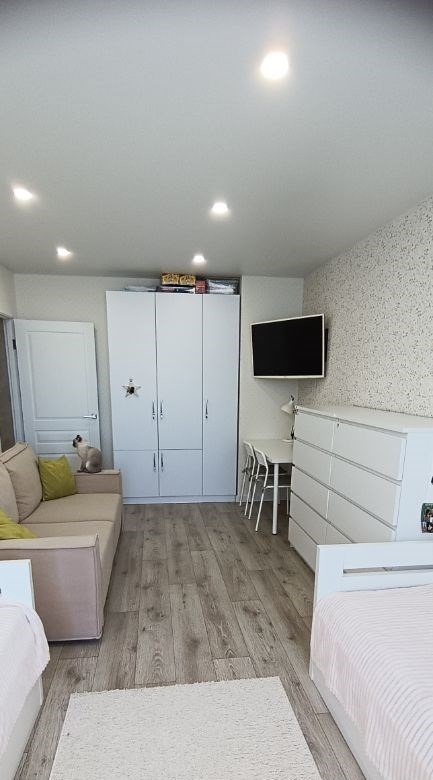 продаётся просторная, светлая двухкомнатная квартира, две спальни и кухнягостинная. в квартире сделан качественный дорогой ремонт. кухнягостиная и коридор стены сделаны декоративной влагостойкой штукатуркой, в комнатах дорогие немецкие обои, на полу текстурированный пол дерево линолеум, зимой очень тепло, отопление регулируется. в квартире остается кухня кухонный гарнитур с встроенной техникой варочная поверхность, духовой шкаф , гардина, шторы и тюль, комната детская остается шкаф и тюль, кондиционер, спальня шкаф комод , кондиционер и зеркало косметическое с тумбой подвесной под вопросом, прихожая шкаф, гардероб, обувница, в ванной и в туалете всё как на фото, гардеробная, входная группа. во дворе установлено 11 камер с доступом к ним. в шаговой доступности магазины пятерочка, парк хаус, аптеки, школа, три детских площадки, большие парковки с обеих сторон дома, есть платная парковка так же в шаговой доступности. квартира готова к проживанию, заходи и живи. себе вариант подобран.