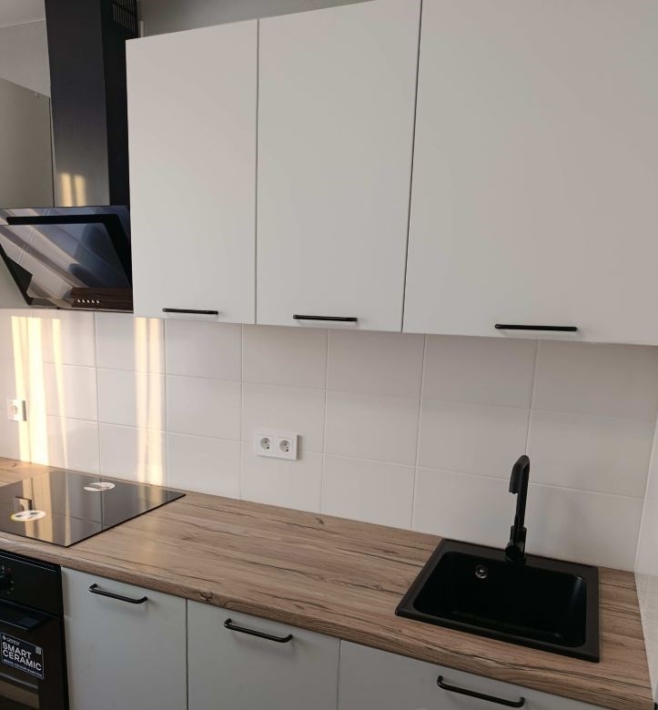 квартира со свежим ремонтом, никто не проживал, кухня со встроенной бытовой техникой, поменяли полностью проводку, натяжные потолки, ламинат, декоративная штукатурка, трубы и радиаторы поменяны. под окном аллея, рядом магазины, школы, садики итд