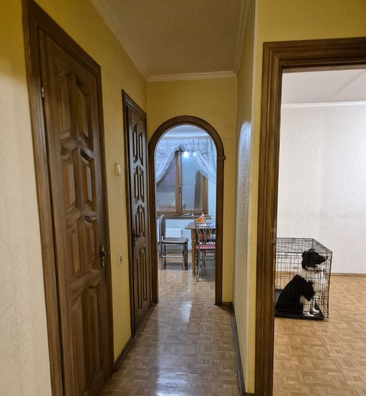 квартира тёплая, уютная, просторная, улучшенной планировки. два балкона, один на кухне, другой в гостиной 6 метров. дом чистенький, на входе консьерж, соседи хорошие. торг уместен.