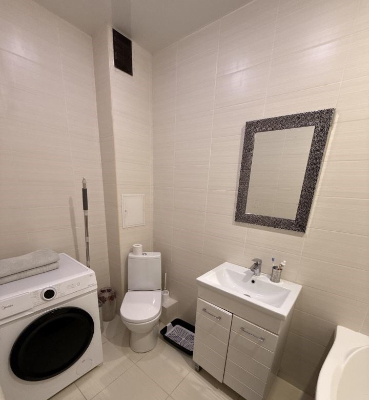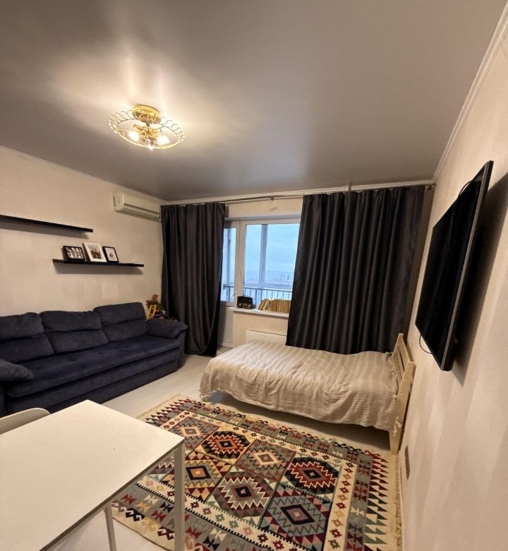 продается уютная однокомнатная квартира с современным ремонтом. просторная кухня площадью 10м оборудованная техникой, включая кондиционер. комната светлая с выходом на балкон, откуда открывается вид на улицу.дом монолитный, построен в 2015 году. во дворе есть детская площадка.1 собственник. без обременений. к выходу на сделку готовы.