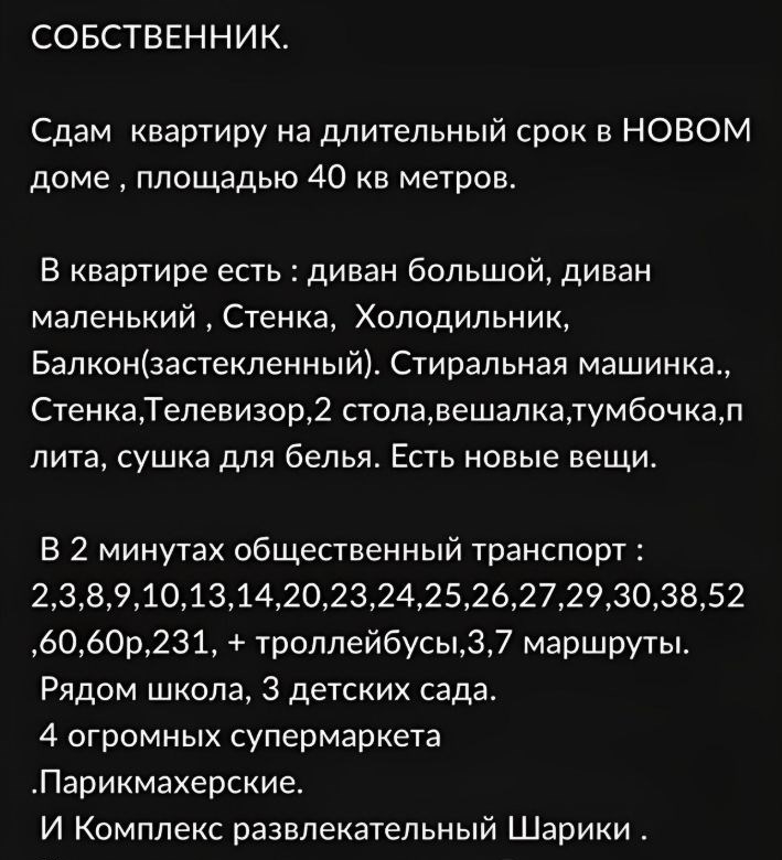 показ только по воскресеньямописание привёл в фото мебель в нормальном состоянии буне новая квартира сдаётся на длительный срокбез детей, без животных, гражданам рфесли нужно выслать видео квартиры в мессенджере пишите смс с номером в сообщениях