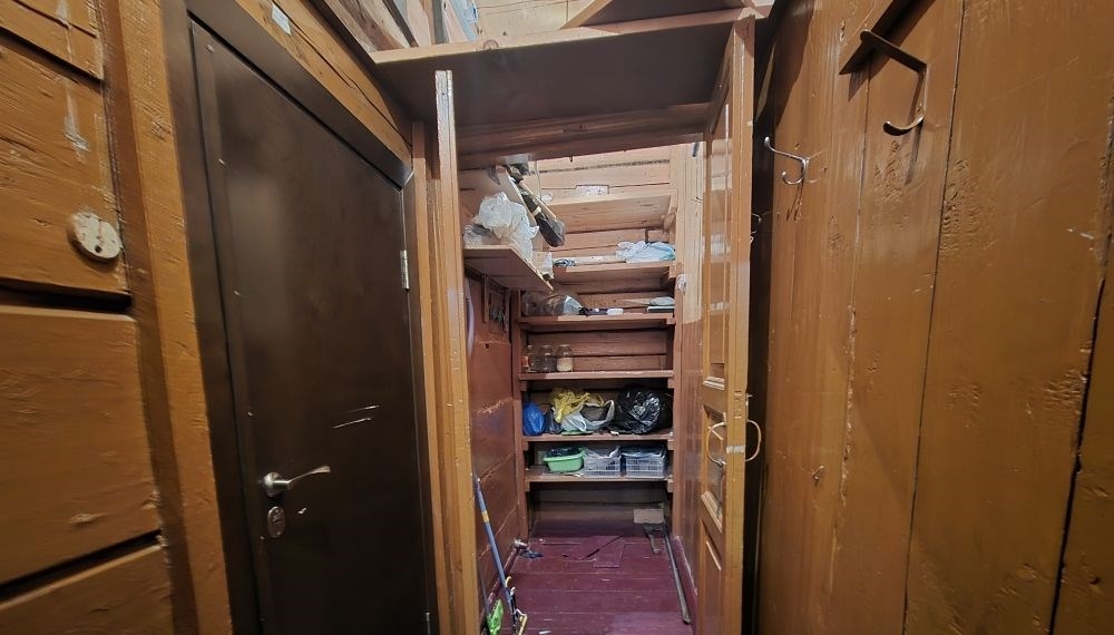 продается однокомнатная квартира в деревянном доме, расположенная на втором этаже. в квартире есть центральное отопление, холодная вода, бойлер для горячей воды и душевая кабинатуалет находится на улице, но есть большая кладовка 2,4 м² в которой можно установить биотуалет.также с квартирой продается доля земельного участка.