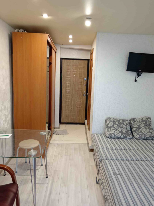 Пансионат, 15,2 м, большая утеплённая лоджия. Больший шкаф, стол, 2хместный диван, холодильник, СВЧ, плитка, стиралка-автомат, совмещённый санузел с душем. Рядом остановки, магазины, торговые центры. Торг уместен.