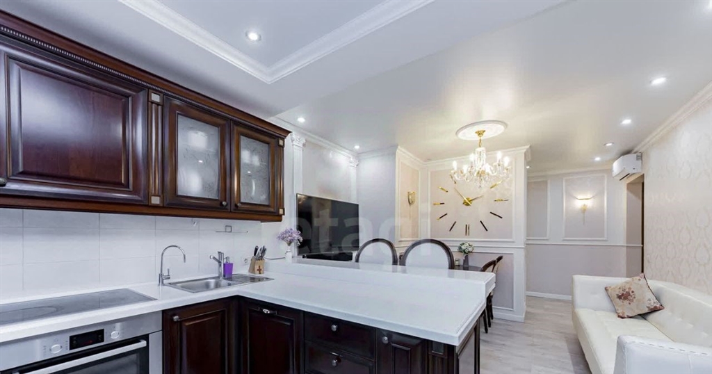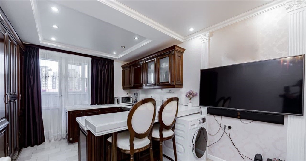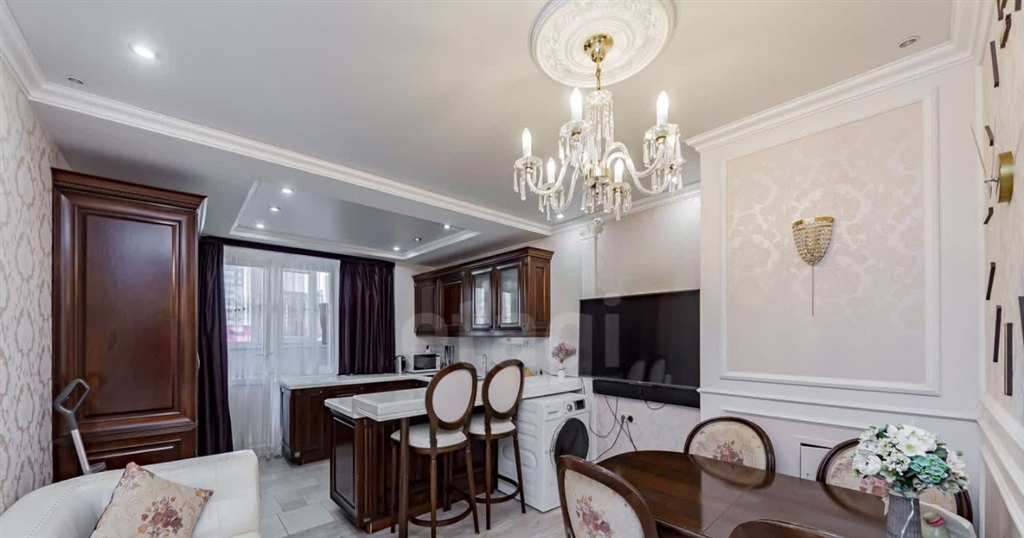 прекрасная 2 евротрёшка квартира в районе тц кристалл готова стать вашим уютным гнёздышком квартира в отличном состоянии выполнен основательный ремонт из современных дорогостоящих экологичных строительных материалов добротные александрийские двери, качественное напольное покрытие, на стенах обои светлых тонов с молдингами , сан.узлы оформлены плиткой, качественные смесители и сан.фаянс. проект квартиры выполнен в стиле мягкой городской классики с легким французским акцентом, что придает ей особое очарование. пространство наполнено светом и воздухом, а использование натуральных материалов, мягких обивок и хрустальных люстр создает гармоничную атмосферу, где каждый элемент находит свое место.удачная планировка квартиры разделяет пространство на две функциональные зоны общественную и приватную. огромная кухнягостиная площадью 24,3 кв.м. с выходом на балкон станет идеальным местом для встреч с друзьями и семейных вечеров. на балконе организован уютный рабочий кабинет с тёплым полом. приватная зона включает две полноценные спальни родительская площадью 19 кв.м. с множеством шкафов для хранения и лаконичная детская площадью 14,5 кв.м. и совмещённый санузел.почти вся мебель, представленная на фотографиях, остается в подарок новым владельцам эксклюзивный кухонный гарнитур с итальянскими деревянными фасадами и каменной столешницей, встроенные шкафы, техника bosch, мягкая мебель и стильные аксессуары. из окон квартиры открывается живописный вид на сквер льва ровнина и новый детский сад, расположенный во дворе.район тц кристалла тюменский3 по праву считается вторым центром города с развитой инфраструктурой новые детские сады, школы, торговоразвлекательные центры и отличная транспортная развязка. здесь царит атмосфера современности и комфорта, где каждый найдет все необходимое для комфортной жизни.эта безупречная квартира ждет своих новых обладателей современных, энергичных и целеустремленных людей с тонким вкусом не упустите шанс стать частью этого уюта и стиля код пользователя 194079номер в базе 1675223