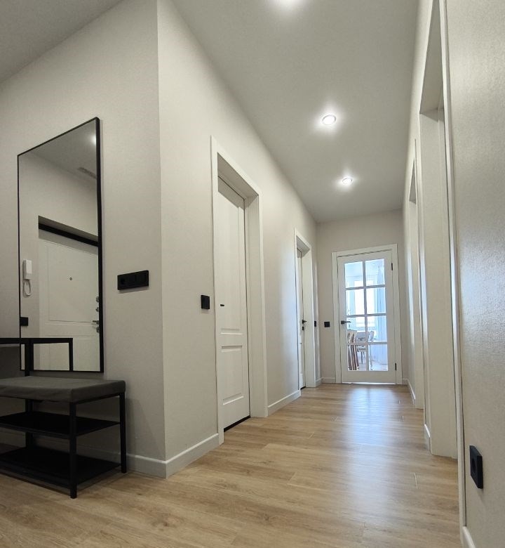 впервые сдаётся просторная 2 квартира с дизайнерским ремонтом в современном монолитнокирпичном доме 2022 года постройки. расположена на 18 этаже из 19, что обеспечивает потрясающий вид на город. в квартире 2 изолированные спальни, и просторная кухнягостиная, раздельный санузел с качественной сантехникой, стиральной машиной и бойлером на 80 литров.кухня оборудована всей необходимой техникой, включая холодильник, посудомоечную машину, свчпечь, индукционную варочную поверхность и духовой шкаф.в гостиной установлен кондиционер и телевизор с кабельнымцифровым тв. просторный коридор с встроенным шкафом предоставляет дополнительное место для хранения. в доме имеется подземный паркинг, который можно арендовать отдельно. двор закрытый, без машин. во дворе есть детские площадки. стоимость аренды 95000 рублей счетчики вода, электроэнергия и отопление.рассматриваем арендаторов без маленьких детей и животных. на длительный срок. в день заселения оплачивается ежемесячный платеж залог в размере 60 000 руб..преимущества квартиры большая кухня гостиная 28 кв.м., качественное наполнение дорогая новая техника и продуманная эргономика, вид на город, тихие соседи, закрытый двор без машин.