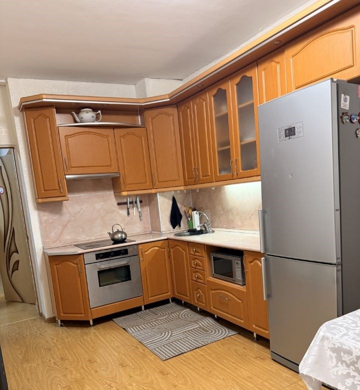 собственник. 2х комнатная теплая, светлая квартира. зал 21 кв.м. кухня 14 кв. м. спальня 14 кв. м. большая лоджия 15 кв.м. батареи регулируются. двор со шлагбаумом. очень хорошие детские площадки. в квартире есть вся необходимая мебель холодильник, стиралка, микроволновка, телевизор, плита, духовка. спокойный соседине наркоманы и не алкаши. во дворе магазин магнит , монетка, эвридей. в шаговой доступности проспект октября, центр борьбы.
