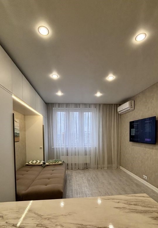 представляем вашему вниманию уникальное предложение, созданное специально для тех, кто ценит комфорт, стиль и панорамные видыпродается великолепная квартира планировки 1, где продумана каждая деталь для вашей идеальной жизни. вас ждет просторная и светлая гостиная, объединенная с кухней, идеальное место для семейных вечеров и приема гостей. уютная спальня станет вашим личным оазисом спокойствия, дополненная выходом на собственную лоджию. квартира расположена на 21 этаже, откуда открывается поистине шикарный вид на современный микрорайон яркий, а также на школу и школьный двор. в квартире выполнен дизайнерский ремонт под ключ, с использованием высококачественных материалов. все абсолютно новое, от отделки до бытовой техники вам не придется заниматься ремонтом или подбором мебели здесь уже есть все для мгновенного переезда кухонная техника стильный холодильник, современная варочная панель, духовой шкаф и незаменимая посудомоечная машина. комфорт мощный кондиционер для идеального климата в любое время года. развлечения большой телевизор для ваших любимых фильмов и передач.эта квартира не просто жилье, это готовое решение для вашей комфортной и красивой жизни. она создана с любовью и вниманием к деталям, чтобы вы могли сразу заселиться и наслаждаться каждым моментомне упустите возможность стать обладателем квартиры мечты