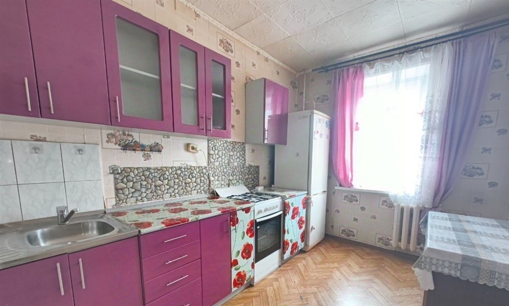 в квартире кухонная мебель газовая плита. холодильник. стиральная машина. кровать диван. стол и стулья. в дворе детская площадка.общ. пл50,4м жил27.7м кух8.4мбольшая площадь, раздельные комнаты правильно формы, большая кухня. требует небольшого ремонта на кухне.рядом с домом вся инфраструктура школа, садик, новая поликлиника, остановка транспорта в шаговой доступности.номер объекта 170826220964