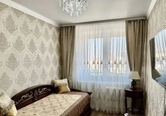 уютная большая однокомнатная квартира в монолитнокирпичном доме с огромной гардеробной и большой лоджией.