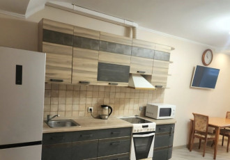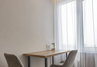 квартира с отдельной комнатой, кухня совмещена с залом. сделан свежий евроремонт, в прихожей тёплый пол. вся необходимая мебель, посуда и бытовая техника имеются. есть застекленный балкон с тёплым полом. придомовая территория под шлагбаумом, есть...