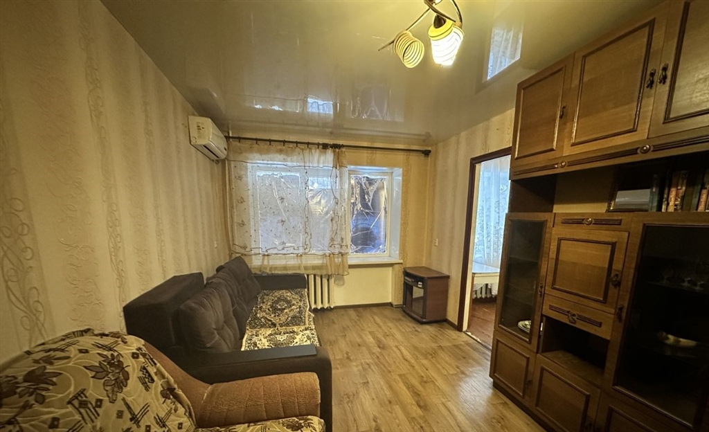 2к квартира по адресу им. маршала еременко ул, д. 19 в краснооктябрьском районехрущевская планировка общая 42.60 жилая 24.00 кухня 5.90комнаты 7.5 16.5 метровквартира в хорошем состоянии. натяжные потолки. пластиковые окна. на полу линолеум.при продаже остается шкаф, кровать, диваны, сплитсистема.квартира не угловая, окна выходят во дворусловия продажи 1 собственник, чистая продажа, подходит под ипотеку.остановка медтехника, рядом проходят улицы триумфальная, штеменкообъект 942350