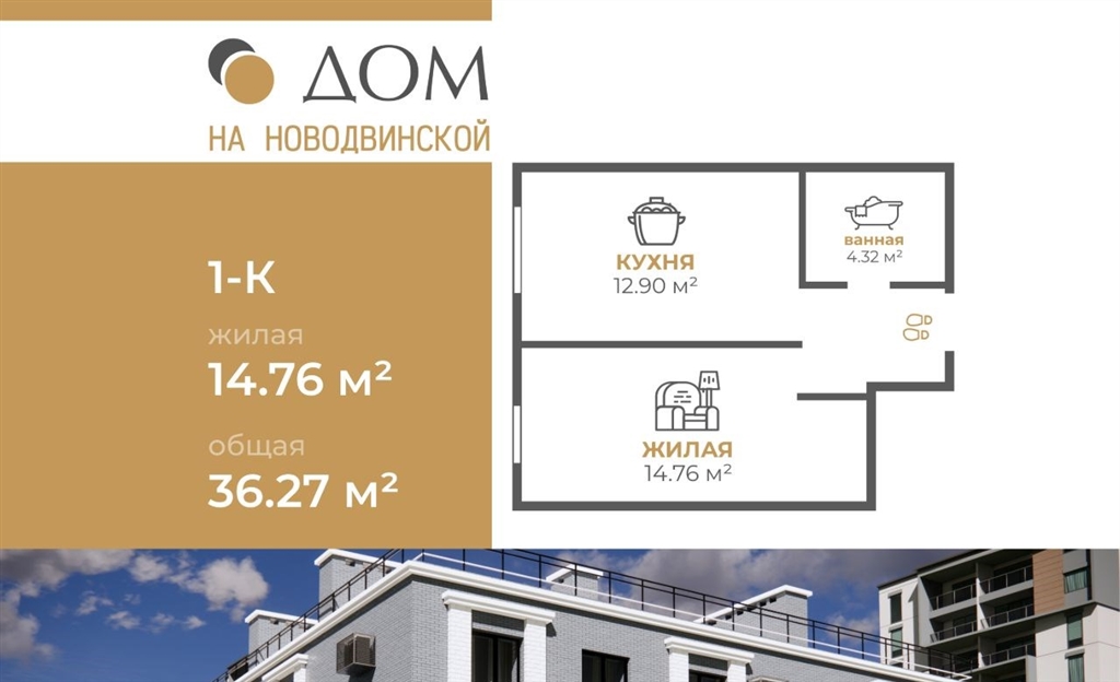 продается 13комнатная квартира в новом 4этажном доме с лифтом по адресу ул. новодвинская, всего 3 км от центра волгограда характеристики квартиры общая площадь 36.27 м² жилая площадь 36.27 м² кухня 14.76 м² высота потолков 2.65 м сдача с отделкой серый ключ сухая стяжка, окна пвх, остекление в пол в гостиных, электрика до щитка. о доме материал стен кирпич, толщина 515 мм толщина перекрытий 20 мм собственная газовая котельная экономия на коммунальных платежах видеонаблюдение и современная пожарная безопасность лифт ключевое преимущество дома фасады оборудованы корзинами для кондиционеров благоустроенная территория детская площадка зоны отдыха парковка и велостоянка озеленение двора и современное освещение инфраструктура качинский рынок, колледж сервиса и торговли, сетевые магазины рядом до центра волгограда 3 км до тц 8 минут до остановки общественного транспорта 1 минута условия покупки ипотека семейная и it от 6 первоначальный взнос от 20,1 сдача дома апрель 2026 года консультируем ежедневно с 900 до 2100. звоните подберем лучший вариант и самые выгодные условияобъект 912370