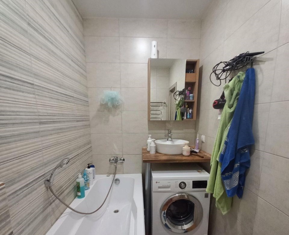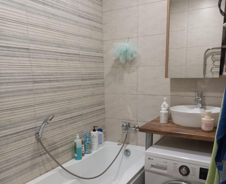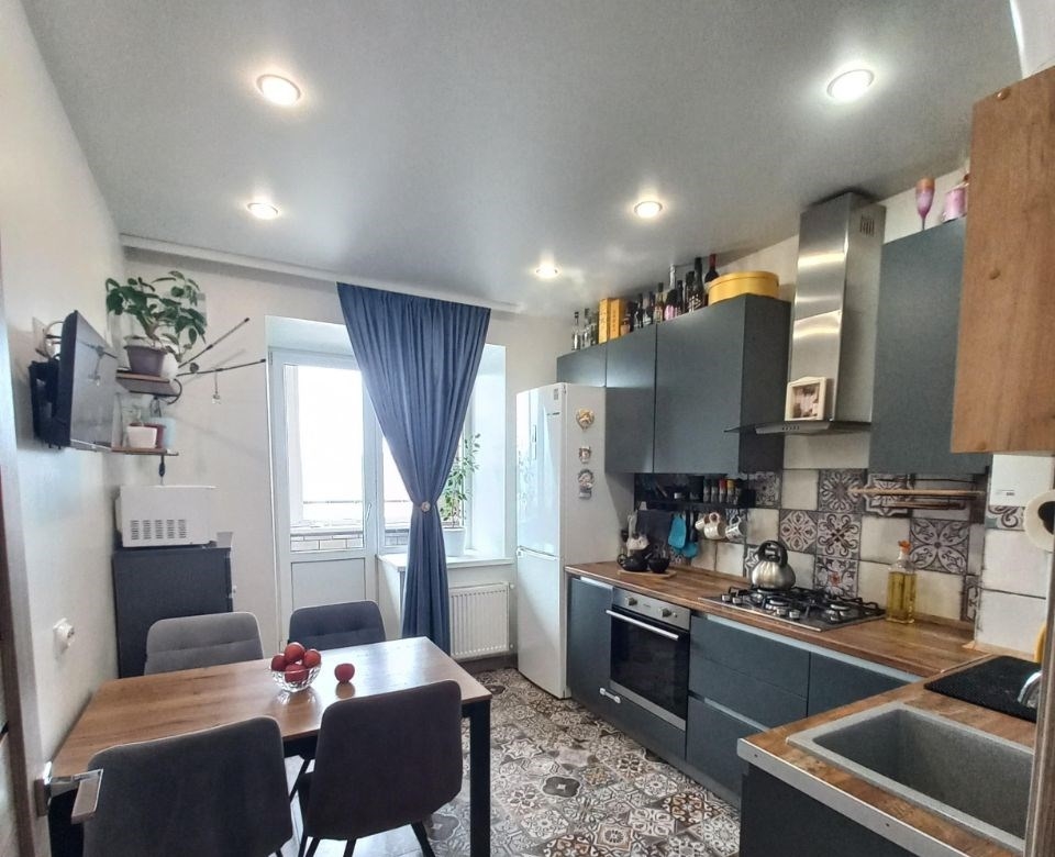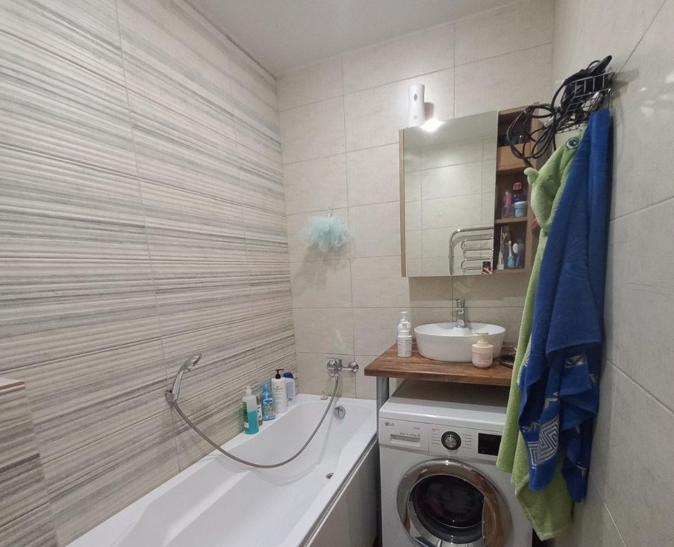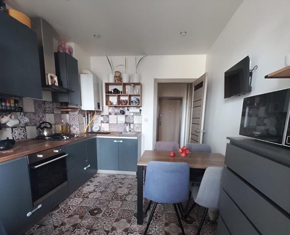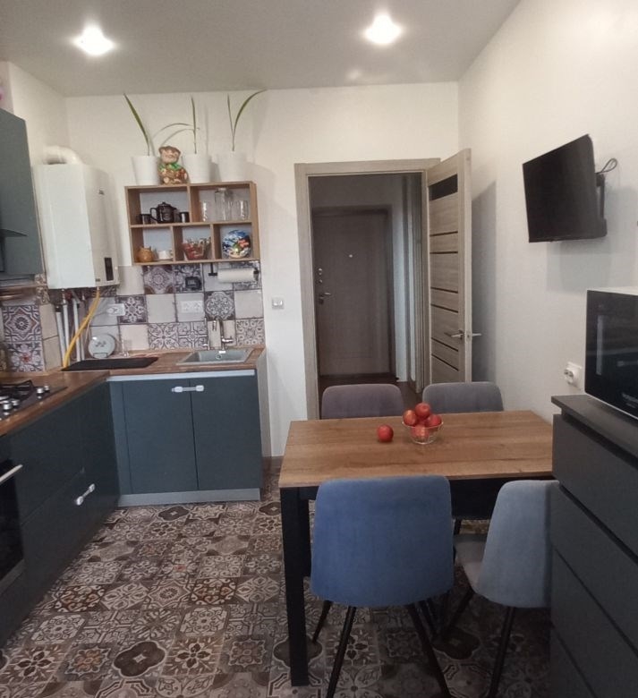 продается однокомнатная квартира общей площадью 33,5 кв.м. без учета лоджии. кухня 9,7 кв.м. просторная застекленная лоджия 8,1 кв.м. два входа с жилой комнаты и с кухни.дом кирпичный, в т.ч. и перегородки с соседними квартирами.ремонт на полу в коридоре, ванной, кухне керамогранит. линолеум с утеплителем 33 класса в жилой комнате. стены в коридоре, кухне и жилой комнате покрашены моющейся краской. стены в ванной выложены керамогранитом, фартук на кухне выложен плиткой.окна пластиковые. встроеный шкаф купе в коридоре на заказ, кухня сделана также на заказ.в квартире индивидуальное отопление двухконтурным котлом фирмы bosch.преимущество индивидуального отопления низкие платежи в зимний период не более 1300 руб. за потребление газа, которые включают в себя готовку, отопление и горячую воду. кроме того в холодный сентябрь можно включить подтопку помещения котлом, вместо подогрева сплитсистемой. в летний период за платежи на более 200р. за газ.вентиляция также индивидуальная, т.е. посторонние запахи отсутствуют.во дворе 4 детских площадок, футбольное поле, настольный теннисный корт.по всему периметру жк, в том числе в подъезде и лифте, имеется видеонаблюдение с возможностью просматривать с любой точки камеры, а также возможно сохранение записей с приложения.также в комплексе имеется мангальная зона на алее с лавочками для отдыха.инфраструктура пятерочка, магнит, аптека, бристоль в шаговой доступности не более 3 минут ходьбы.в квартире останется кухонный гарнитур и полки без техники, в коридоре встроеный шкаф купе, вся комплектация ванной комнаты кроме стир.машинки.возможна продажа со всей мебелью и техникой по договоренности.