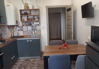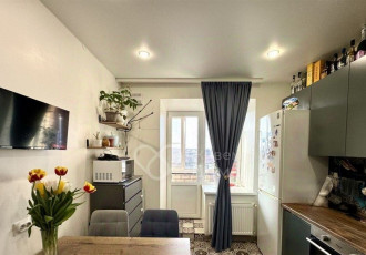 продается однокомнатная квартира общей площадью 33,5 кв.м. без учета лоджии. кухня 9,7 кв.м. просторная застекленная лоджия 8,1 кв.м. два входа с жилой комнаты и с кухни.дом кирпичный, в т.ч. и перегородки с соседними квартирами.ремонт на полу в...