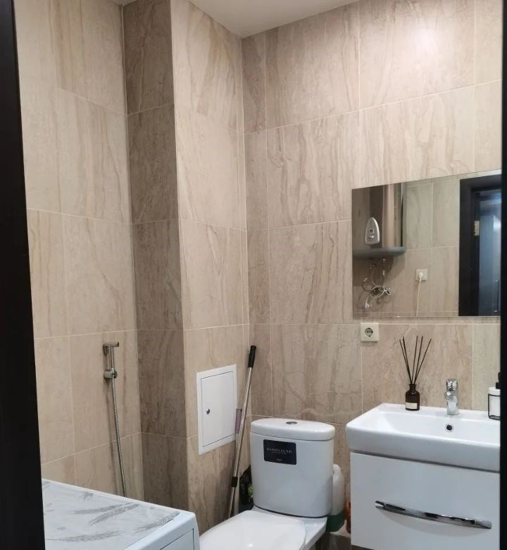 сдаётся в аренду стильная однокомнатная квартира с дизайнерским ремонтом, расположенная на 17м этаже современного дома 2014 года постройки. общая площадь квартиры составляет 43 кв. м, из которых 18 кв. м занимает просторная кухня.в квартире есть вся необходимая техника 2 кондиционера, холодильник, 2 телевизора и стиральная машина. в комнате и на кухне установлена удобная мебель, поэтому можно сразу заехать и жить без дополнительных забот. совмещённый санузел оснащён ванной, что создаёт дополнительный комфорт.дом оборудован пассажирским и грузовым лифтами. . на территории предусмотрена наземная парковка для автомобилей. рядом расположены школы, детские сады и магазины. . хорошая транспортная доступность. аренда квартиры осуществляется напрямую от собственника, без комиссии. возможна долгосрочная аренда с оформлением договора. залог и предоплата обсуждаются индивидуально. квартира идеально подойдёт для одного или двух человек.подробная информация по телефону.