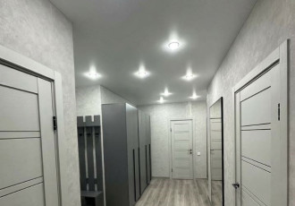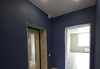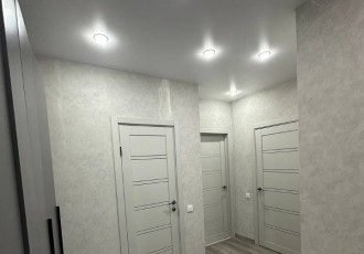 квартира студия, сделана перепланировка. все стены выровнены, сделана шумоизоляция от соседей, потолок гипсокартон, установлен кондиционер ballu, входная дверь bravo, окна пвх. покрытие пола ламинат. много света, световые линии, треки при желании...